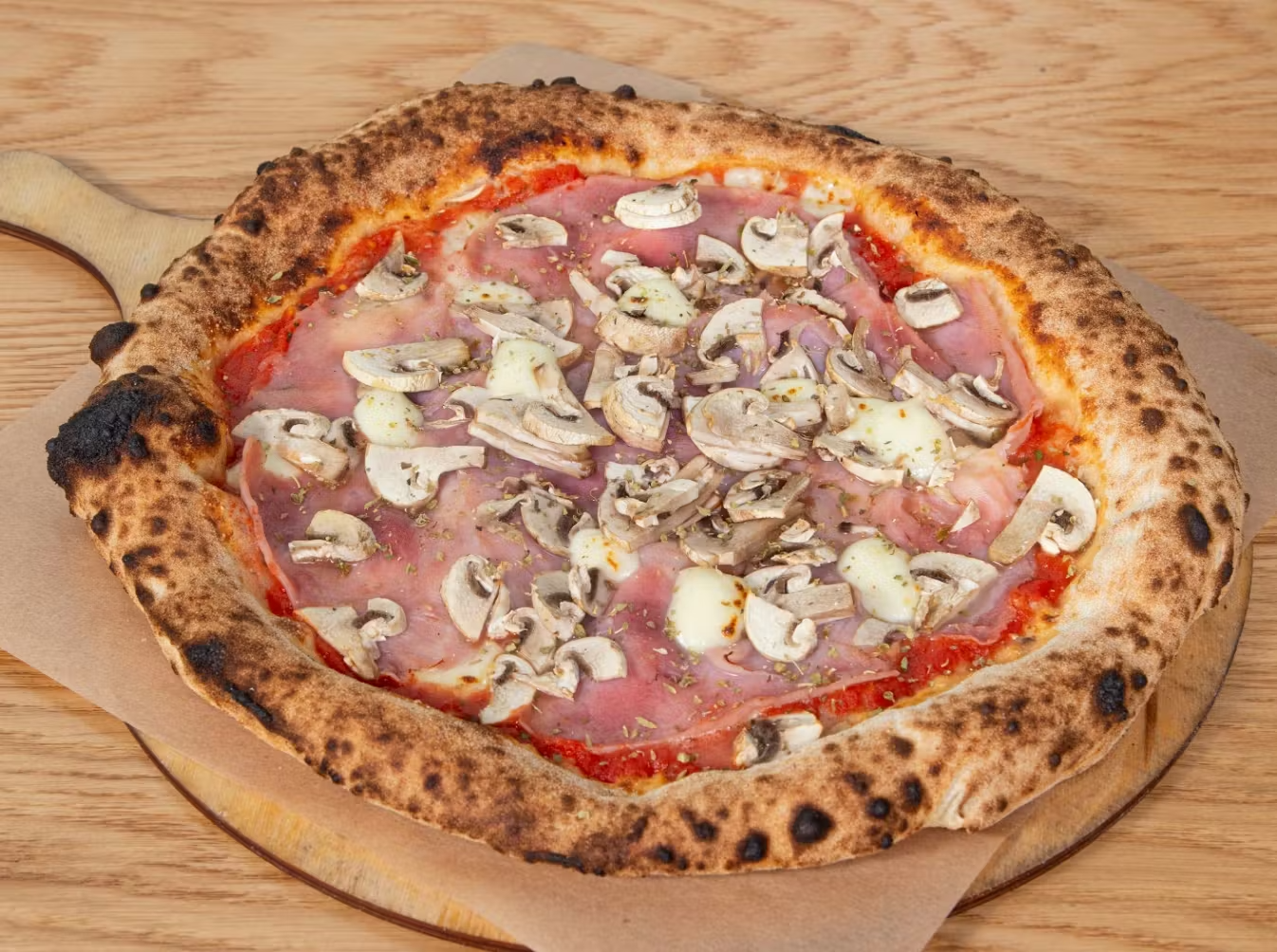 mozzarella , pelati tomato sauce, prosciutto cotto, champignon mushrooms Pizza packaging