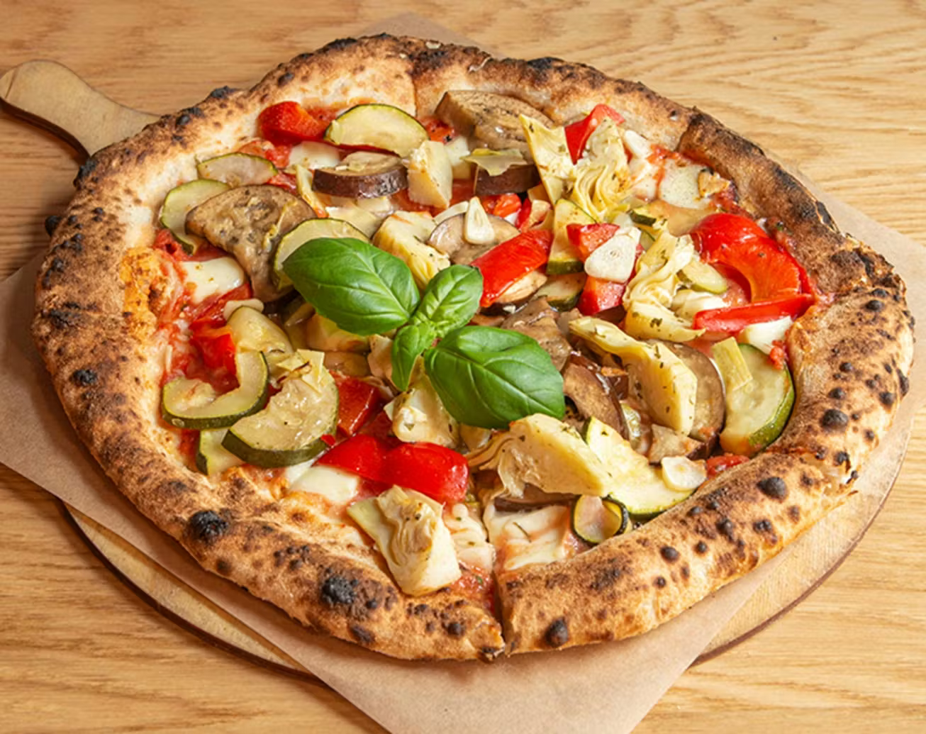 pelati tomato sauce, mozzarella, grilled vegetables, artichokes, mushrooms, black olives
